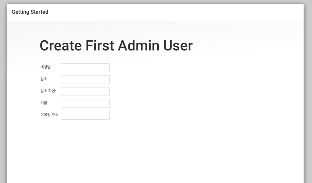 7. [Create First Admin User]에서 Admin User 정보 입력